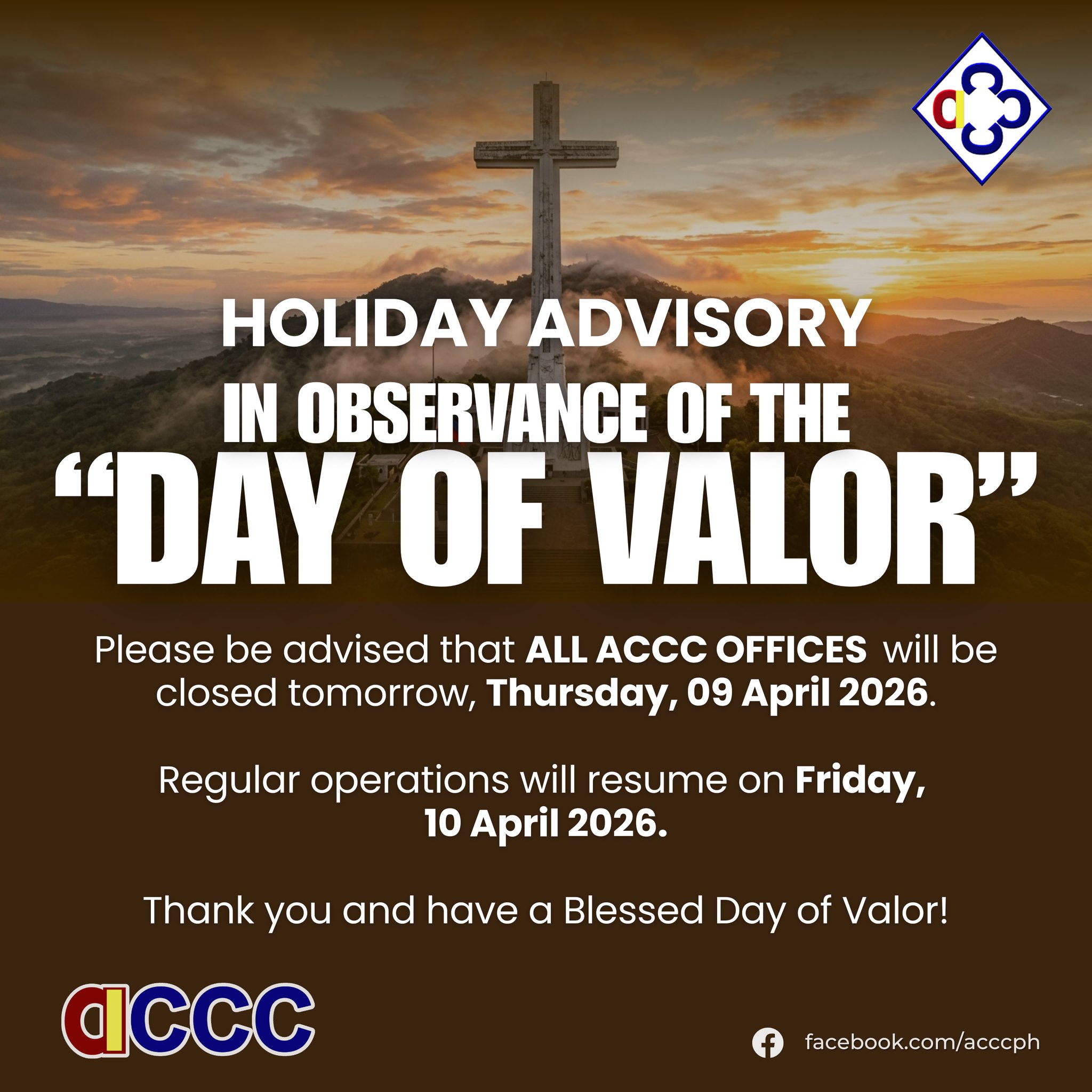 Please be advised that πππ ππππ ππ π ππππ will be closed tomorrow, Thursday, 09 April 2026.