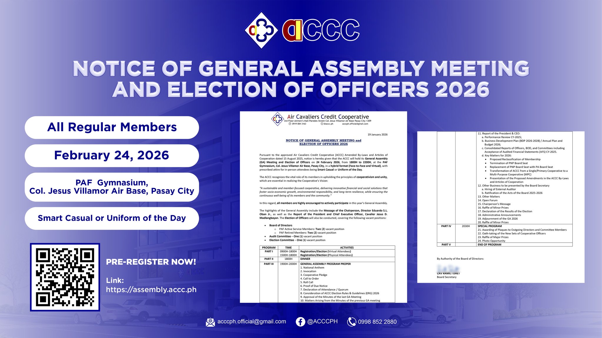You can pre-register thru online by scanning the QR Code or thru this link: https://assembly.accc.ph